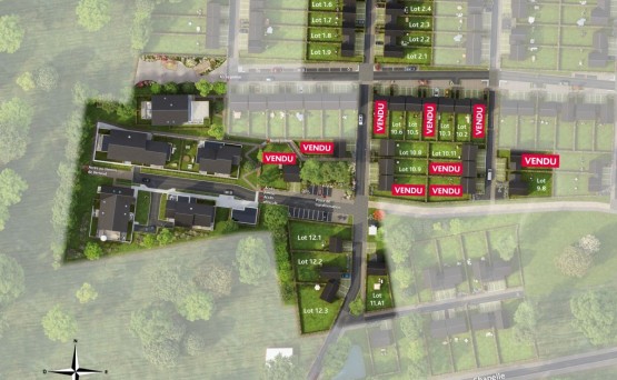 Les voiries et les éclairages publics sont réalisés par le lotisseur, et certains projets incluent des aménagements paysagers (haies, trottoirs, espaces verts) qui renforcent le confort et la cohérence esthétique du quartier.
