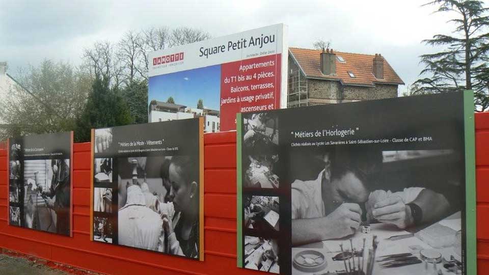 L’exposition est née d’une initiative commune de Lamotte Constructeur et de la ville de Saint-Sébastien-sur-Loire. L’objectif : créer une animation sur nos palissades de chantier pendant la durée des travaux de construction du Square Petit Anjou.