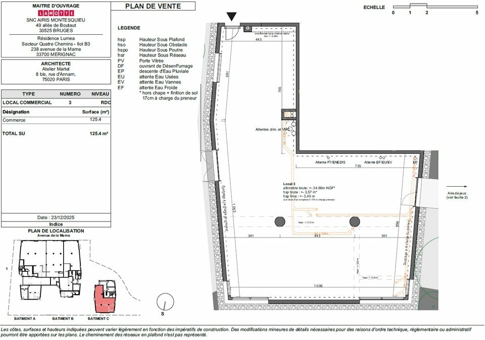 LAMOTTE ENTREPRISES & COMMERCES vous propose, au rez-de-chaussée de la résidence LUMÉA, un local à destination de crèche de 125 m².Espace extérieur clôturé et privatif de 34 m².