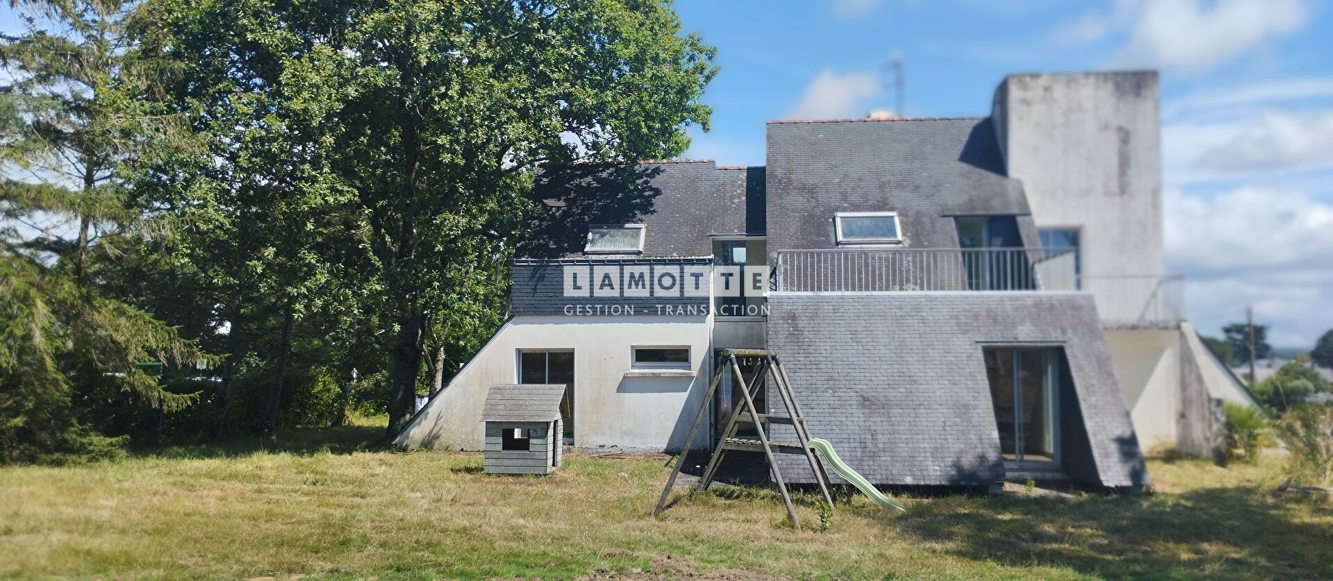 LAMOTTE TRANSACTION vous propose en EXCLUSIVITÉ, sur la commune de BADEN, cette maison d'architecte d'environ 137 m² habitables (au sens du DPE), sur une parcelle arborée de plus de 1000 m² et à seulement 300 m de la plage de Toulindac et l'embarcadère de Port Blanc - Île aux Moines