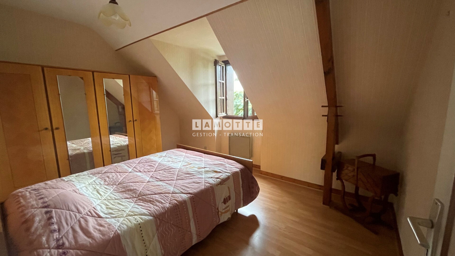 Un garage avec mezzanine complète cette maison, qui nécessite des travaux de rafraîchissement pour révéler tout son potentiel.