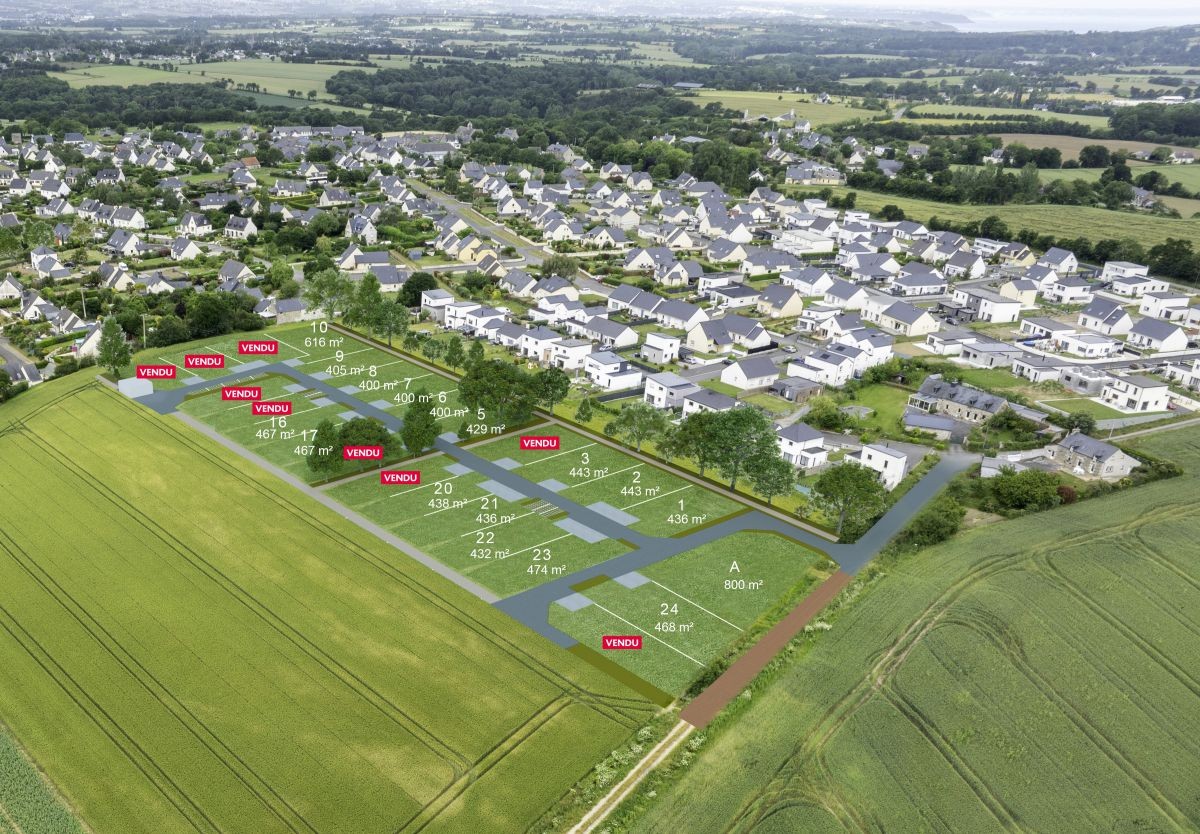 Sur le lieu-dit de La Fontaine Arouët à Andel, Les Champs Vaillants – Horizon Vert est bordé au sud par la rivière Le Gouessant. Le lotissement regroupe 25 terrains à bâtir sur de grandes parcelles, de 400 à 616 m², soit environ 447 m² en moyenne. Cette opération s’inscrit dans la continuité du développement de l’habitat sur place. Le programme vient ainsi créer un nouveau quartier afin de répondre à la demande d’agrandissement urbain au sein de l’agglomération Lamballe Terre & Mer.