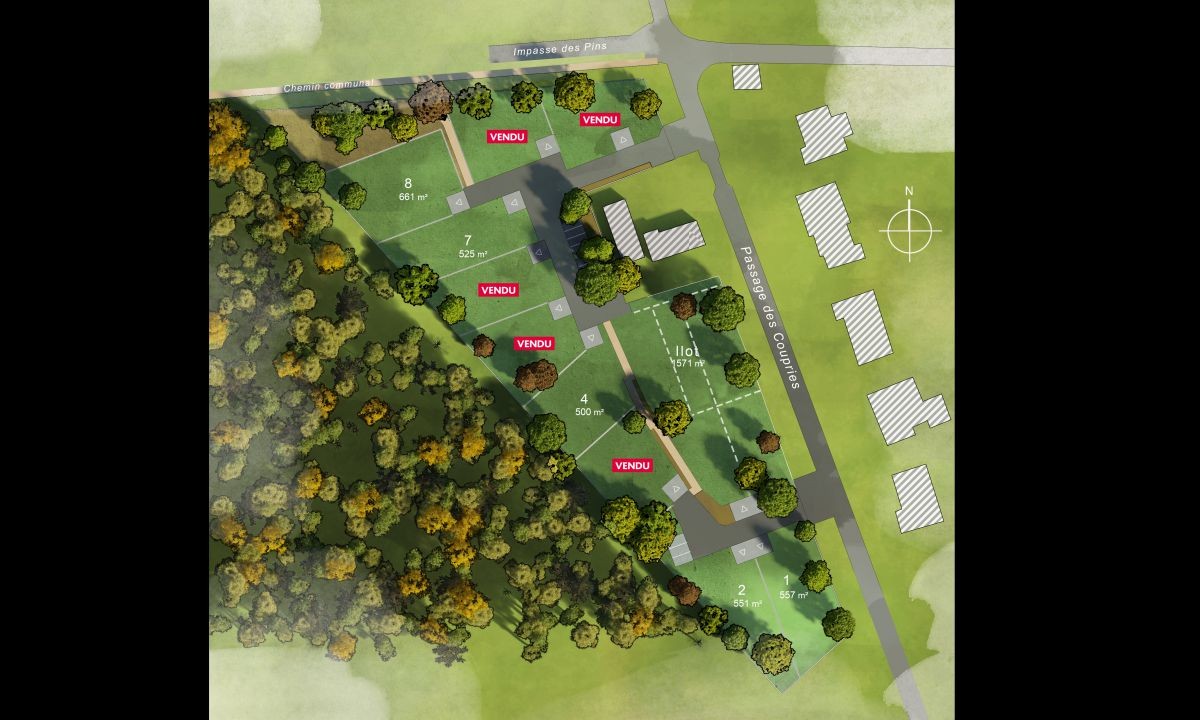 Le lotissement Les Coupries à Basse-Goulaine se compose de 10 lots aux belles surfaces, au cœur d’un environnement pavillonnaire recherché. À seulement 600 m de toutes les commodités et en face d’un arrêt de bus, les terrains à bâtir sont idéalement placés pour conjuguer confort et praticité. Proche d’un espace boisé, le lotissement a été pensé pour préserver la tranquillité des résidents avec deux espaces intimistes, organisés en deux impasses et reliés par un chemin piéton, offrant un cadre de vie exceptionnel.