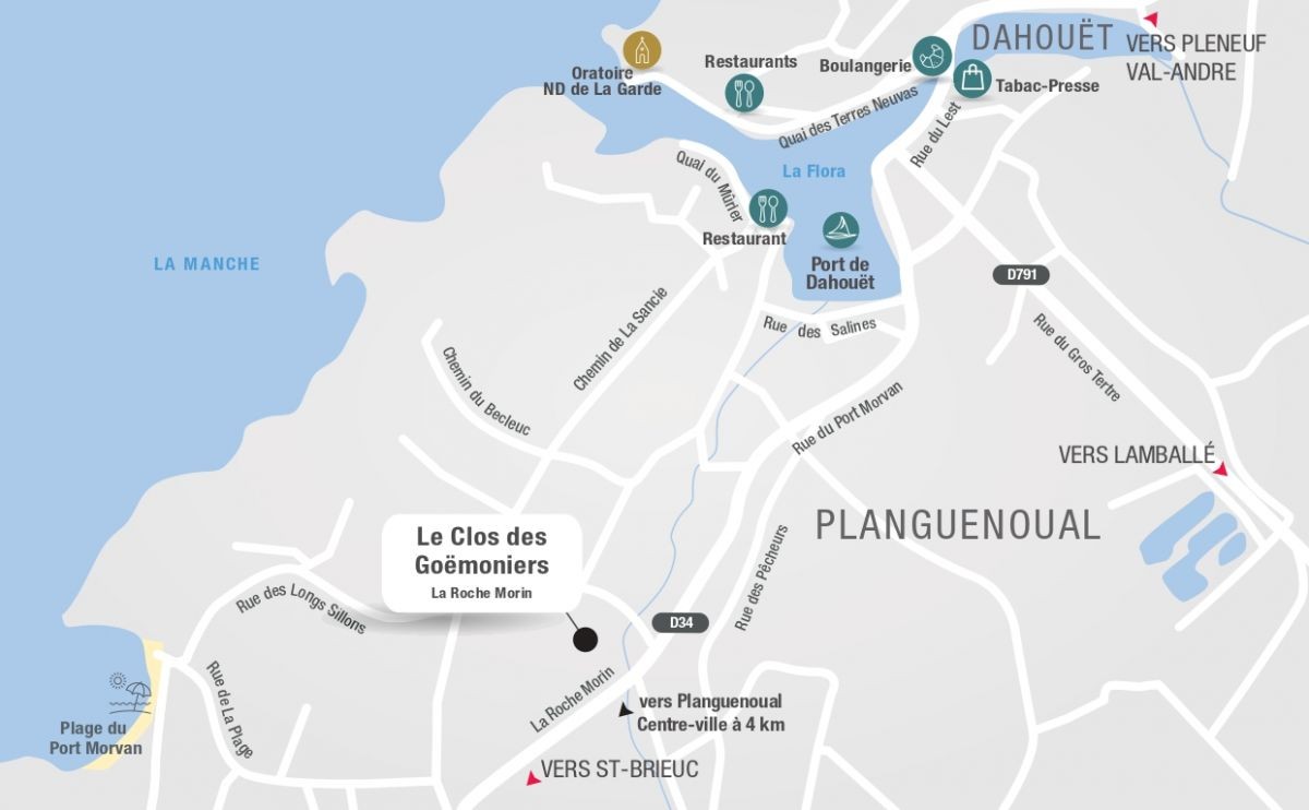 À deux pas de Pléneuf-Val-André et à seulement 9 km de Lamballe-Armor, Planguenoual offre un cadre paisible et verdoyant, avec un accès direct au littoral. Sur la côte de Penthièvre, vous bénéficiez d’un environnement privilégié, à proximité de toutes les commodités du quotidien : commerces, écoles, services et transports. Un emplacement de choix pour acheter un terrain à bâtir et faire construire votre maison.