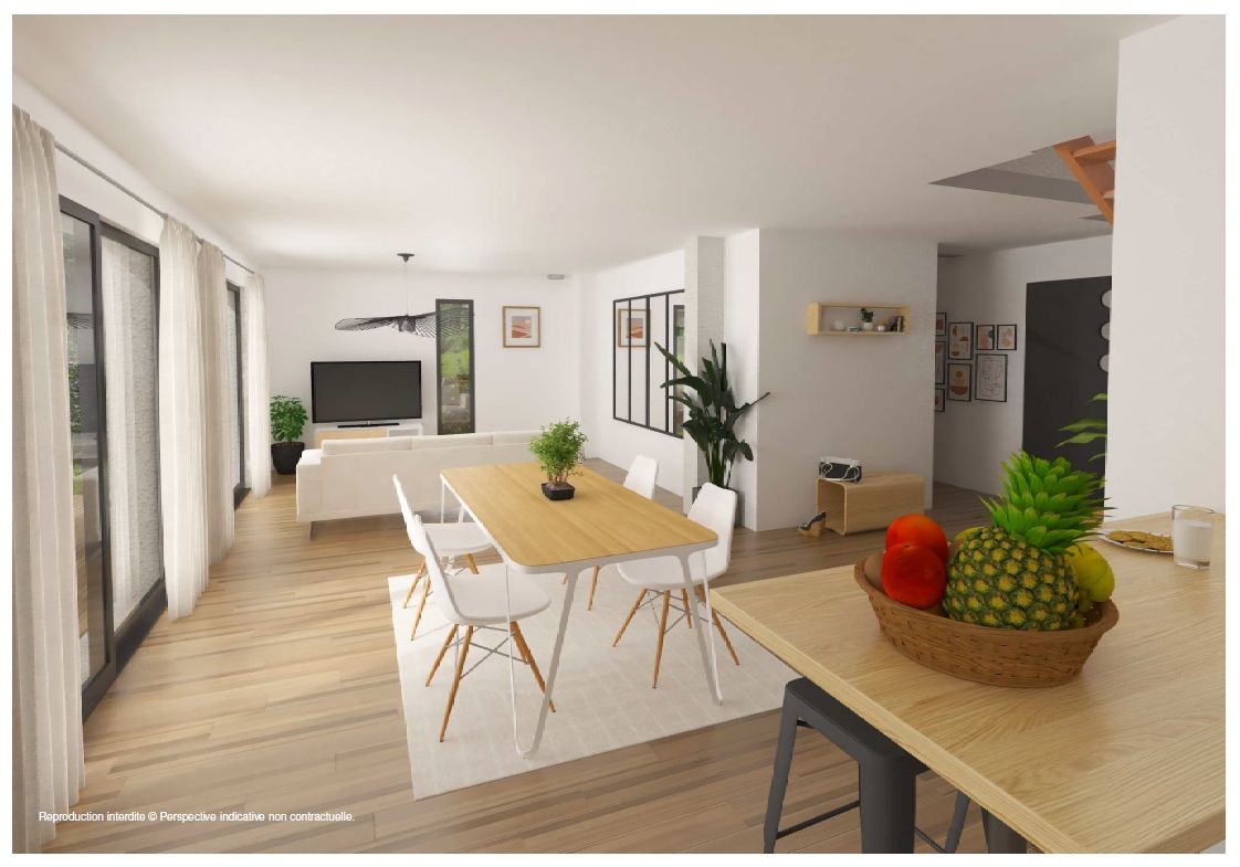 Le vaste salon-séjour est baigné de lumière grâce à de grandes ouvertures donnant sur le jardin, créant un espace convivial idéal pour les moments partagés. La cuisine ouverte, moderne et fonctionnelle, peut être aménagée selon vos envies pour allier design et praticité au quotidien.
