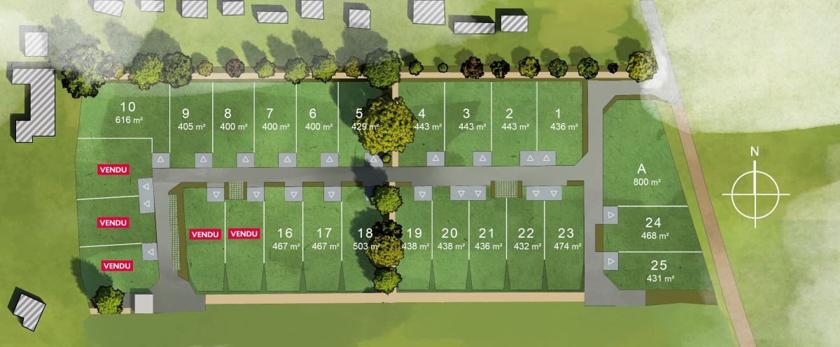 Sur le lieu-dit de La Fontaine Arouët à Andel, Les Champs Vaillants – Horizon Vert est bordé au sud par la rivière Le Gouessant. Le lotissement regroupe 25 terrains à bâtir sur de grandes parcelles, de 400 à 616 m², soit environ 447 m² en moyenne. Cette opération s’inscrit dans la continuité du développement de l’habitat sur place. Le programme vient ainsi créer un nouveau quartier afin de répondre à la demande d’agrandissement urbain au sein de l’agglomération Lamballe Terre & Mer.