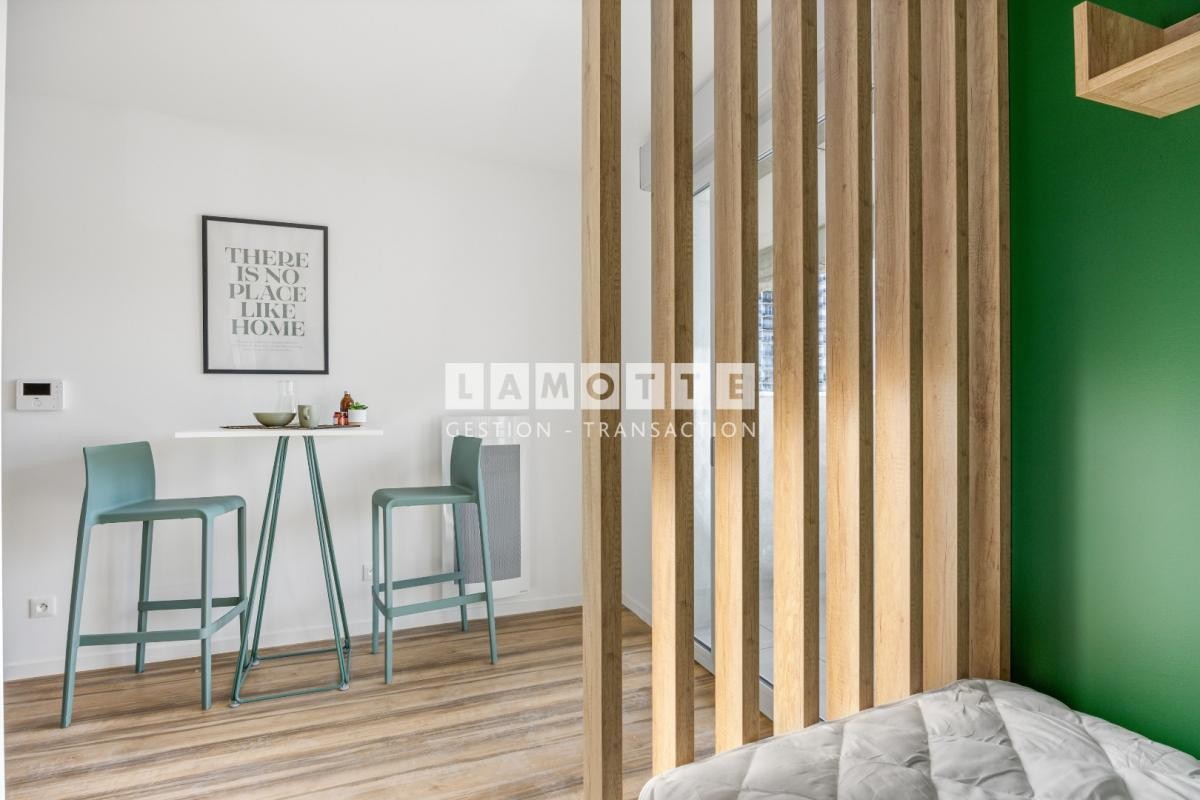 AVENUE MONTAIGNE - AU PIED DU TRAM ARRET CONSERVATOIRE - Dans une résidence avec services (laverie et espace de travail commun), un studio NEUF entièrement meublé comprenant une kitchenette équipée (plaque de cuisson, hotte, réfrigérateur, micro-ondes) ouverte sur la pièce de vie donnant sur un extérieur, une salle d'eau avec WC.