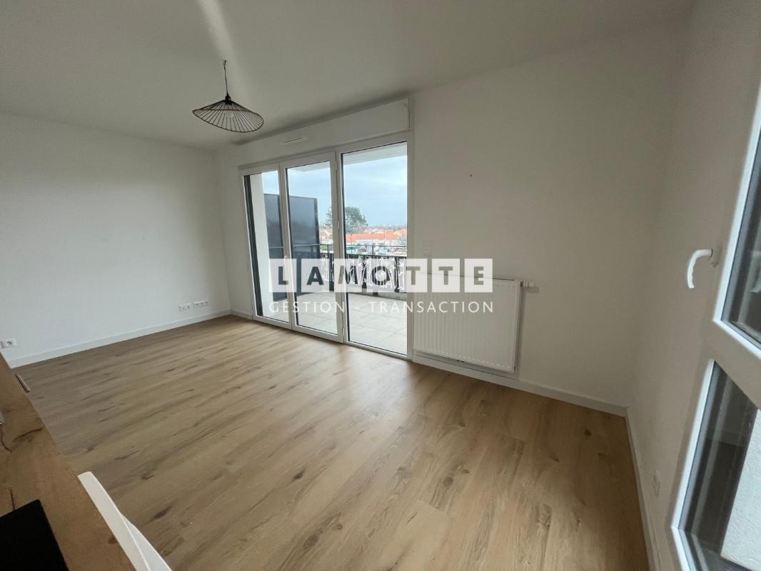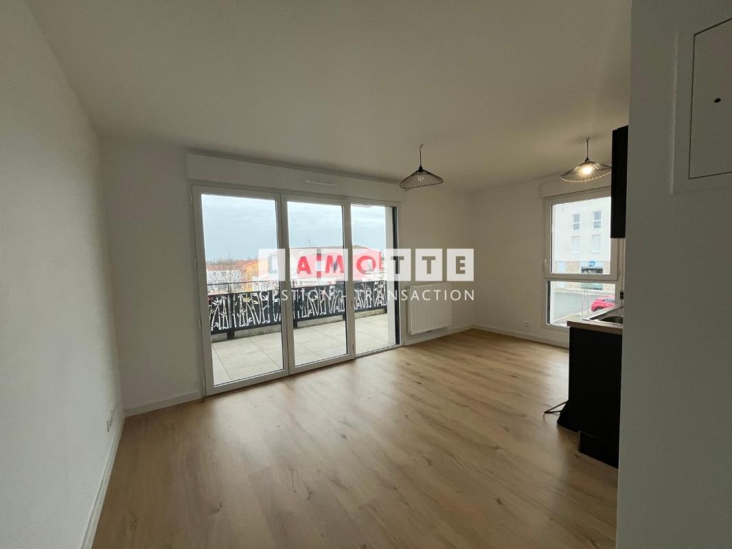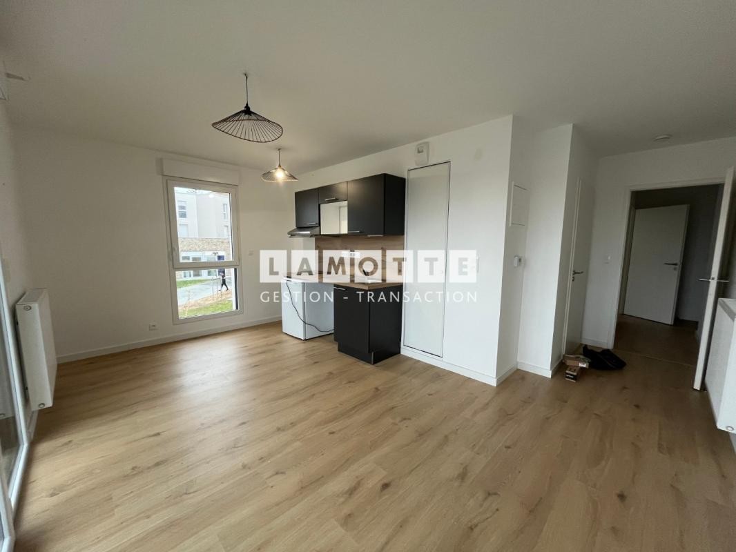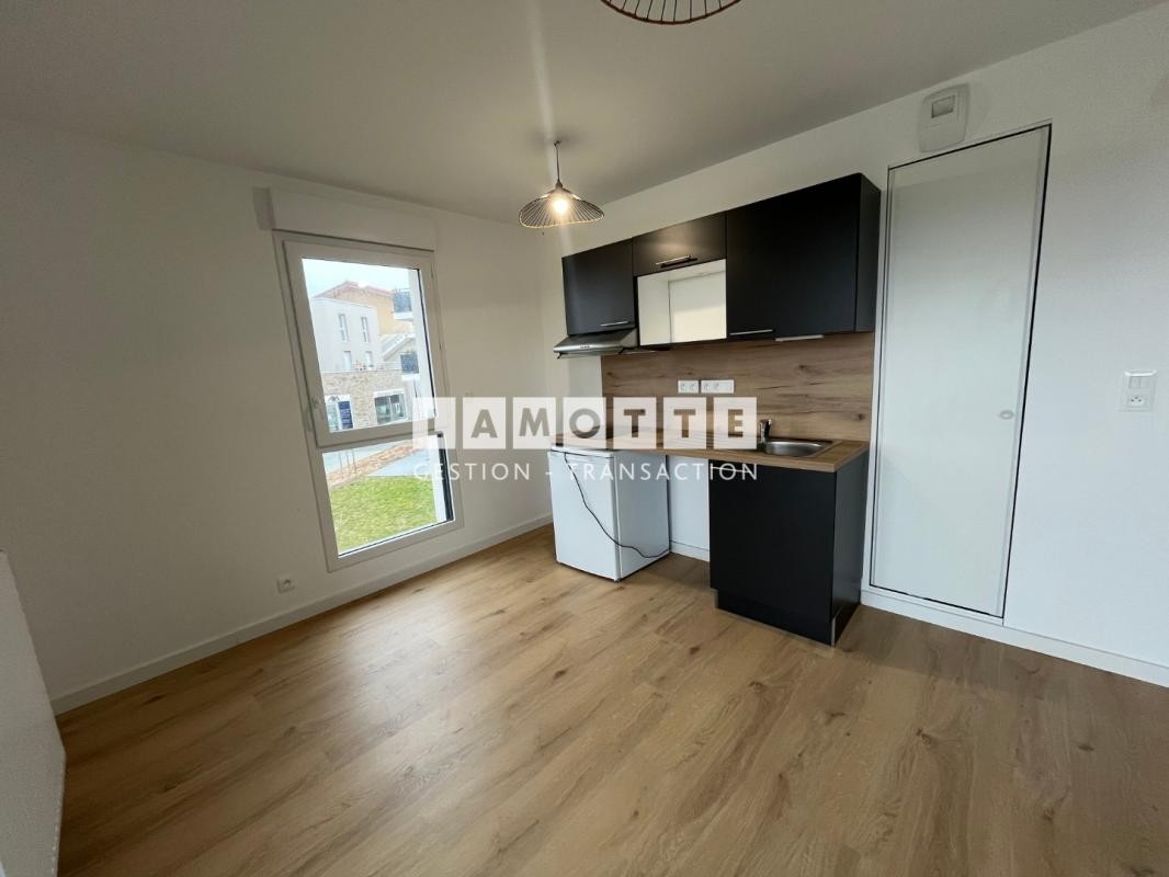 CENTRE VILLE DE BOUAYE - Un appartement de type 2 récent comprenant une entrée, une cuisine aménagée et équipée (plaque de cuisson, hotte, réfrigérateur) ouverte sur le séjour donnant sur une terrasse, une chambre, une salle d'eau et des WC.