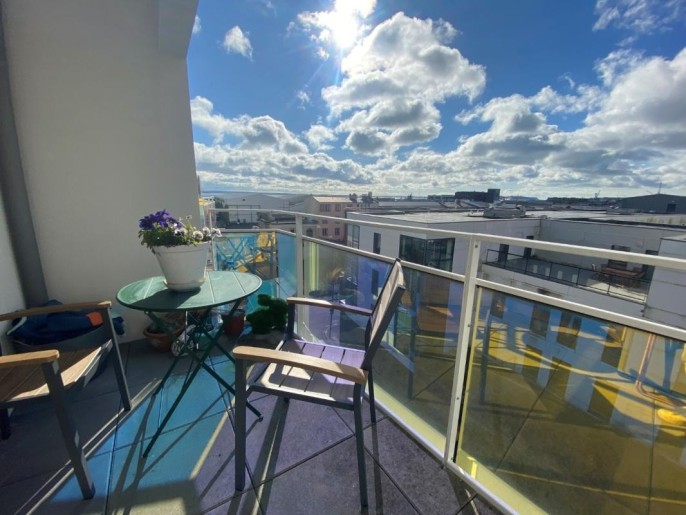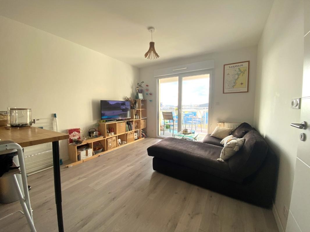 BREST - PORT DE COMMERCE - Dans un immeuble très récent, à quelques minutes de la gare et de l'hyper centre, nous vous proposons cet appartement T2 comprenant : une entrée avec placard, une cuisine aménagée et équipée (plaque de cuisson, hotte, réfrigérateur) ouverte sur un séjour donnant sur un balcon exposé Ouest, une chambre avec placard, une salle d'eau et wc séparé.