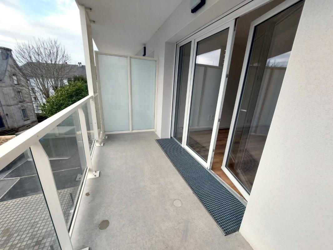 DOUARNENEZ - Dans un immeuble neuf et sécurisé, à deux pas du port et de la plage des Dames, nous vous proposons cet appartement type 2 de standing comprenant une entrée avec placard, un séjour lumineux avec cuisine ouverte aménagée et équipée (plaque de cuisson, hotte, réfrigérateur top, emplacement lave-vaisselle) donnant sur un balcon exposé Sud-Ouest et offrant une vue partielle mer, une chambre avec placard, une salle d'eau avec WC.