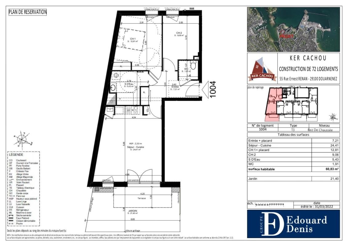 DOUARNENEZ - Dans un immeuble neuf et sécurisé, à deux pas du port et de la plage des Dames, nous vous proposons cet appartement type 3 de standing comprenant une entrée avec placard, un séjour lumineux avec cuisine ouverte donnant sur un espace extérieur clos exposé Ouest, deux chambres dont une avec placard, une salle d'eau et un WC indépendant.