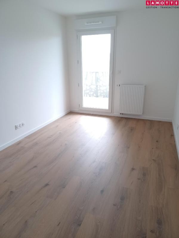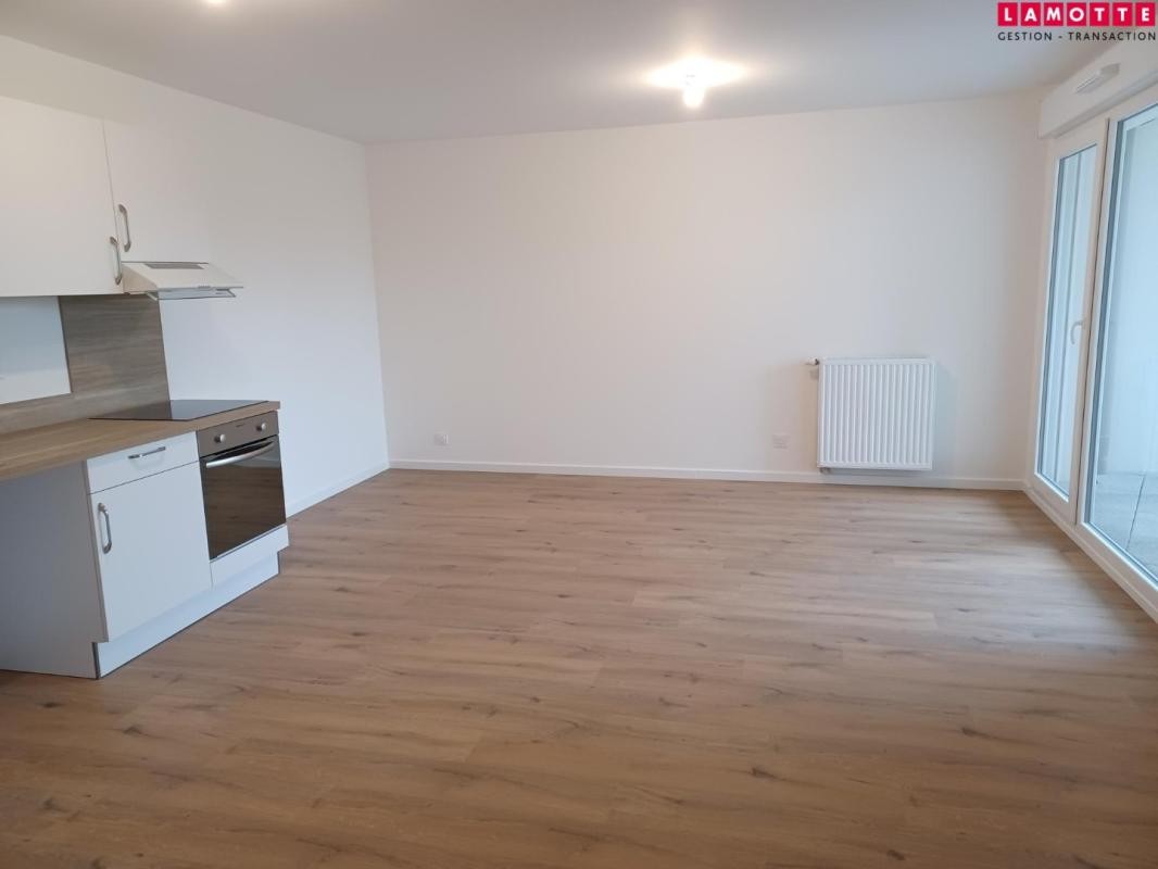 Appartement 3 pièces situé au 1er étage d'une résidence neuve L'appartement comprend une entrée avec placard, une salle d'eau, un WC séparé, une cuisine ouverte aménagée et équipée (hotte, plaque, four) et un grand salon donnant sur une terrasse exposée Sud-Ouest.