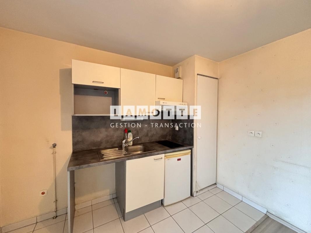 NANTES CENTRE RUE DES OLIVETTES, un appartement de type 1 dans une résidence récente comprenant une entrée avec placard, un séjour avec coin cuisine équipée (plaque de cuisson, hotte, réfrigérateur), un balcon, une salle d'eau avec WC.