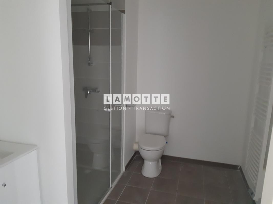 QUARTIER DALBY - un T1 dans une résidence récente comprenant une entrée, un séjour avec cuisine équipée (plaque de cuisson, hotte, réfrigérateur) un balcon, une salle d'eau avec wc.