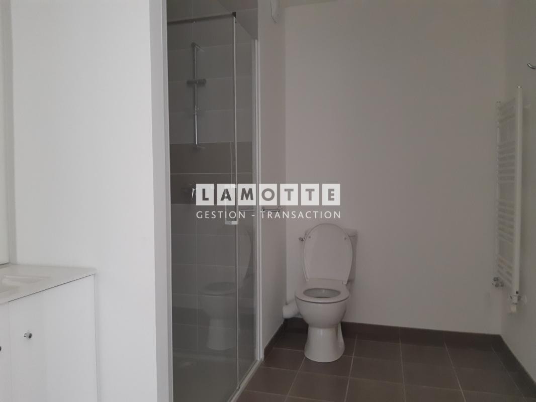 RUE D'ALLONVILLE - Un appartement de type 1 comprenant une entrée avec placard, une cuisine aménagée et équipée (plaque de cuisson, hotte, réfrigérateur) ouverte sur le séjour donnant sur un balcon exposé SUD OUEST, une salle d'eau avec WC.