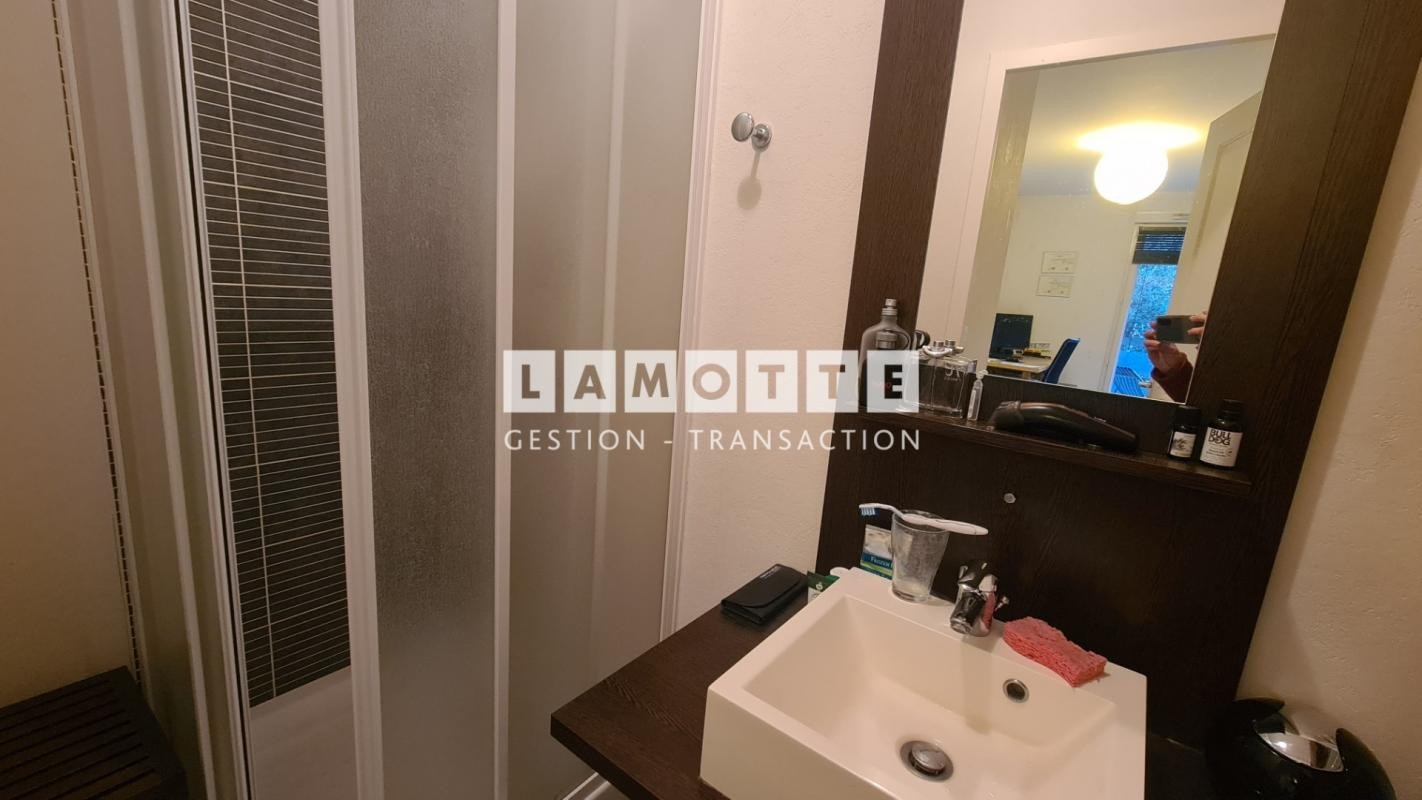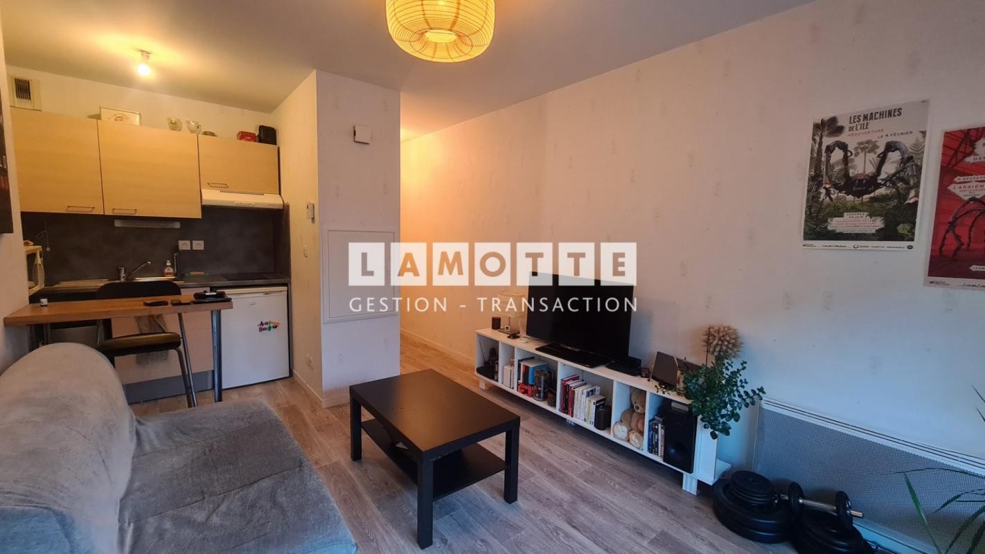 QUARTIER CHU - Un appartement de type 2 comprenant une entrée avec placard, une cuisine aménagée et équipée (plaque de cuisson, hotte, réfrigérateur) ouverte sur le séjour donnant sur une terrasse au calme, une chambre avec placard, une salle d'eau et WC séparés.