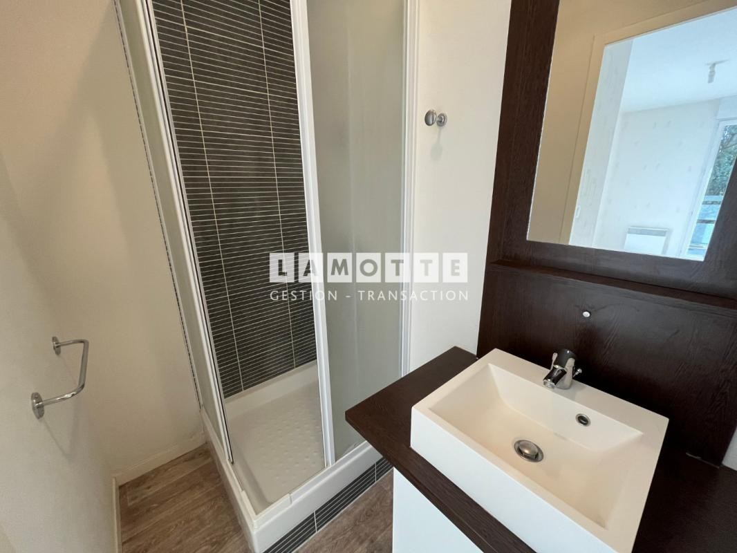 QUARTIER CHU - Un appartement de type 2 comprenant une entrée avec placard, une cuisine aménagée et équipée (plaque de cuisson, hotte, réfrigérateur) ouverte sur le séjour donnant sur une terrasse au calme, une chambre avec placard, une salle d'eau et WC séparés.