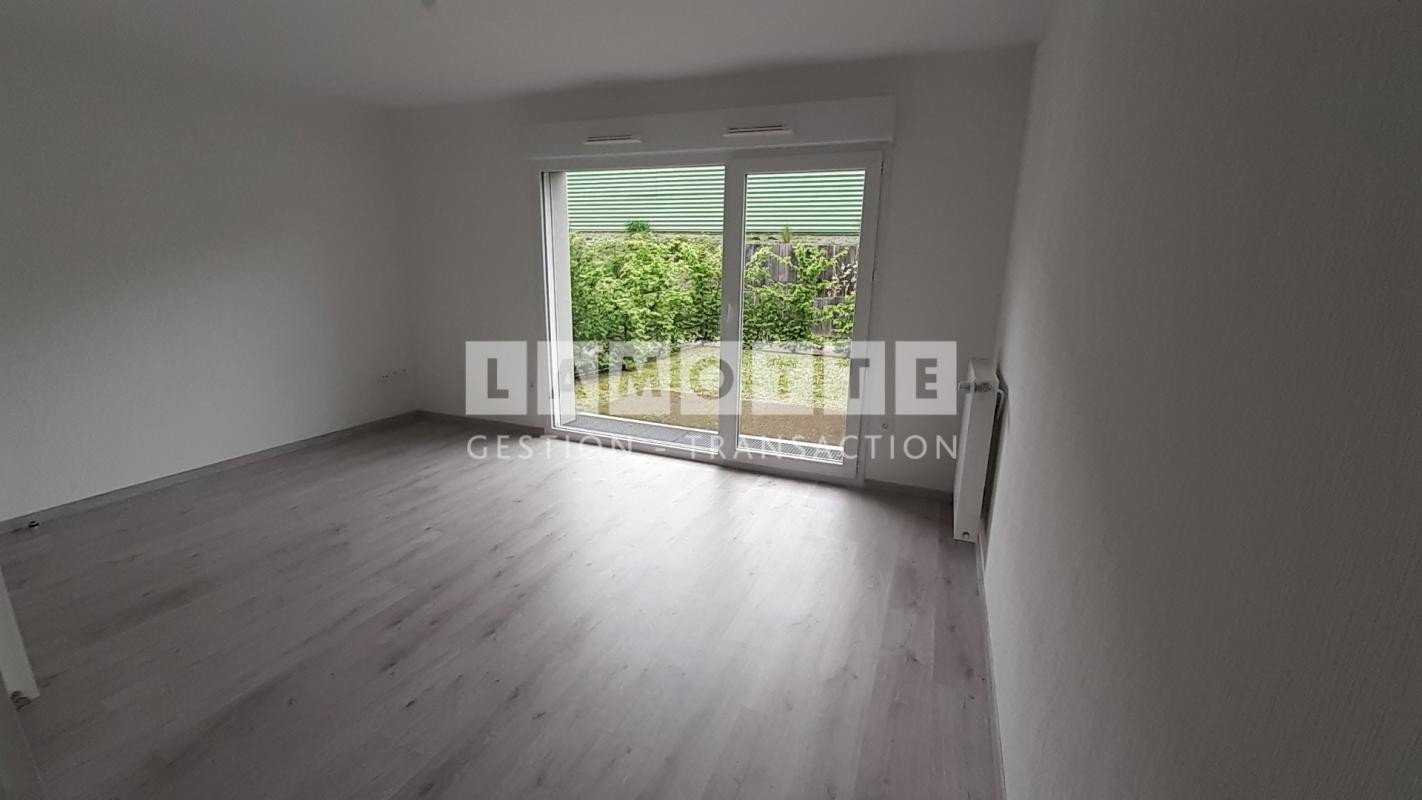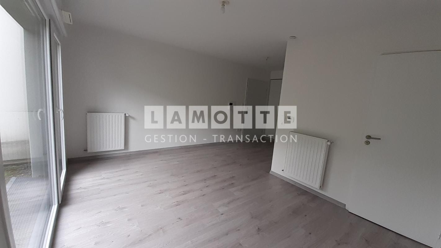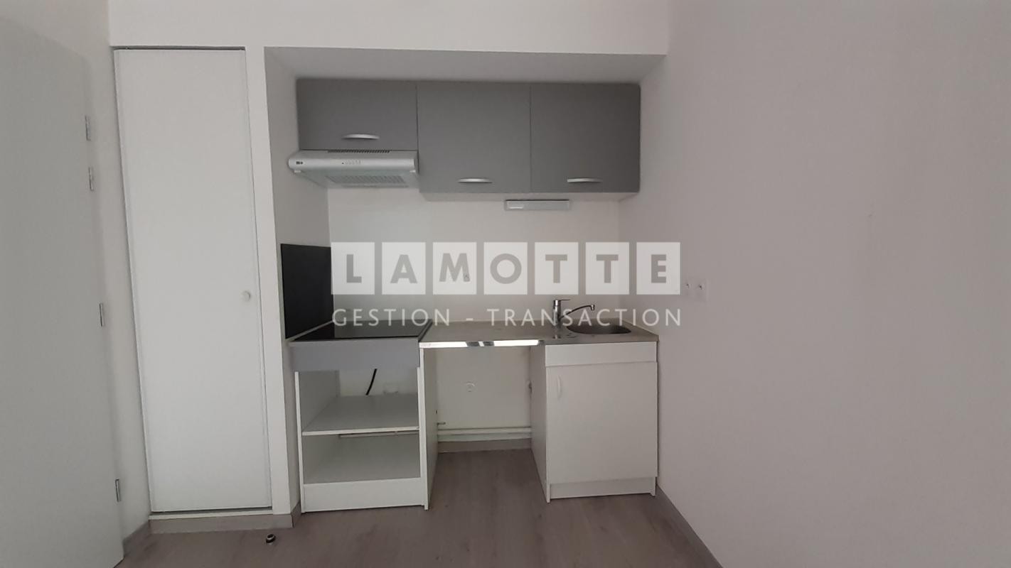 QUARTIER BOURGEONNIERE - Un appartement de type 1 comprenant une cuisine aménagée et équipée (plaque de cuisson, hotte) ouverte sur le séjour donnant sur une terrasse et un jardin, une salle d'eau avec WC.