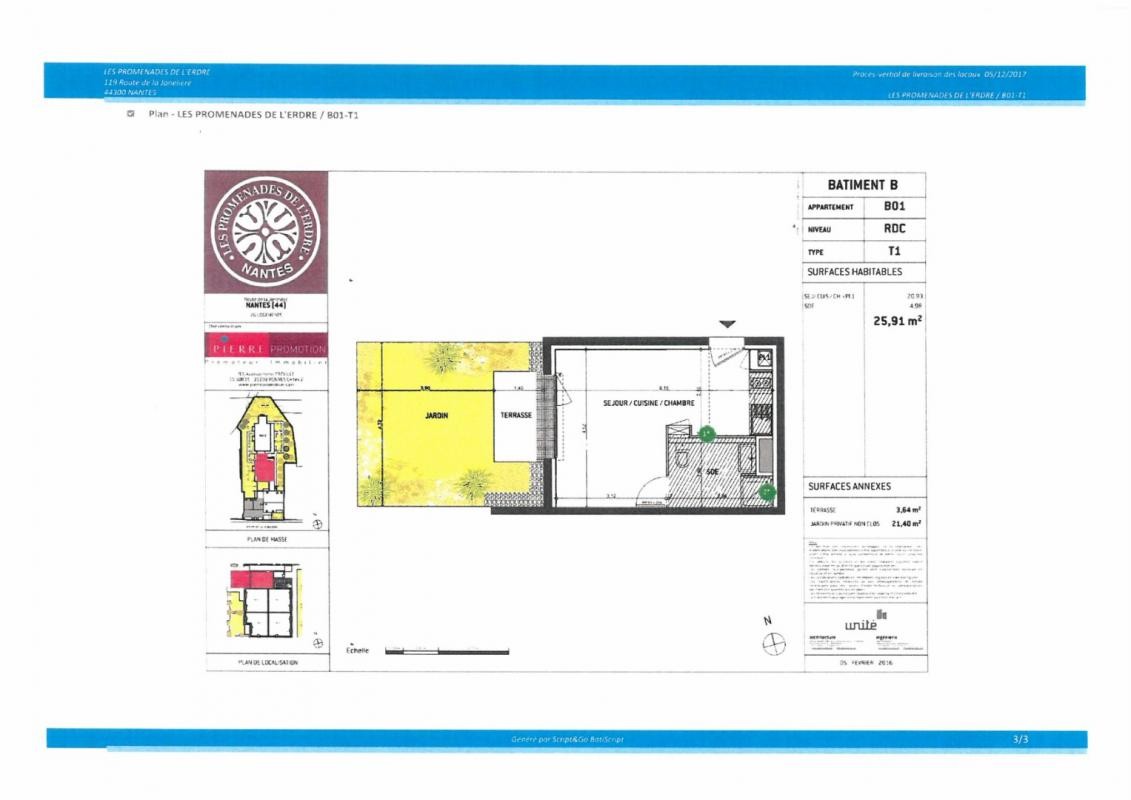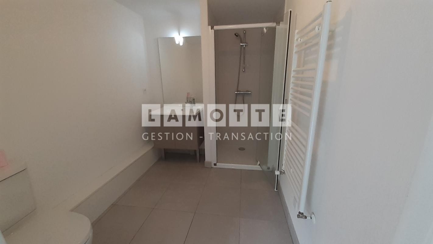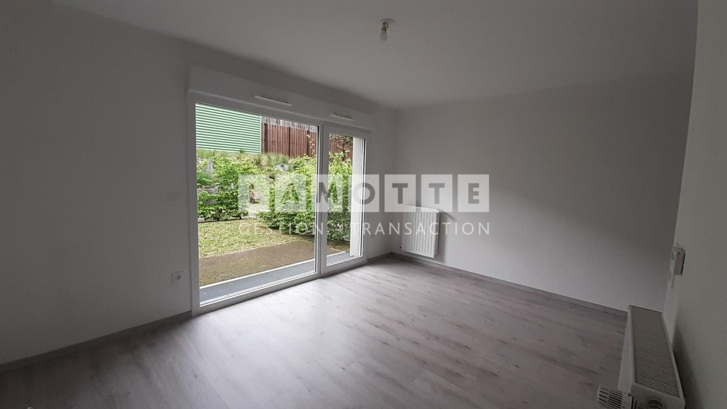QUARTIER BOURGEONNIERE - Un appartement de type 1 comprenant une cuisine aménagée et équipée (plaque de cuisson, hotte) ouverte sur le séjour donnant sur une terrasse et un jardin, une salle d'eau avec WC.