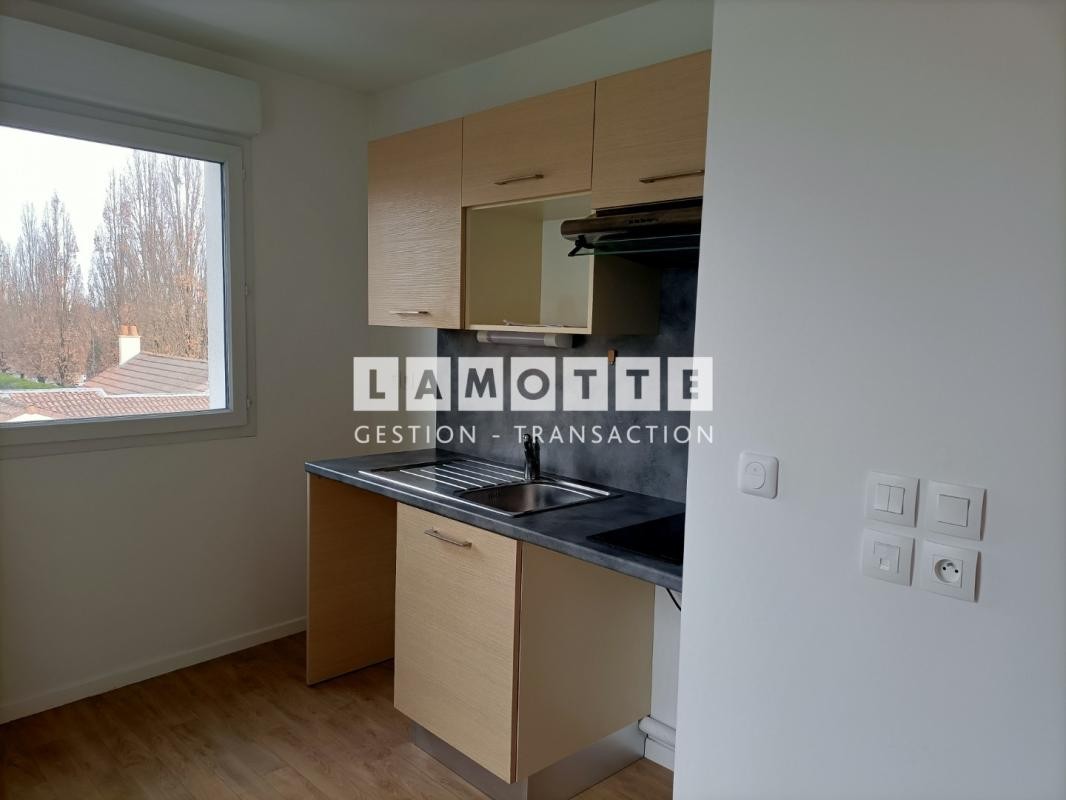RUE DU LANDREAU - Un appartement de type 2 comprenant une entrée avec placard, une cuisine aménagée et équipée (plaque de cuisson, hotte, réfrigérateur) ouverte sur le séjour donnant sur un balcon, une chambre avec une salle d'eau attenante et WC séparés.
