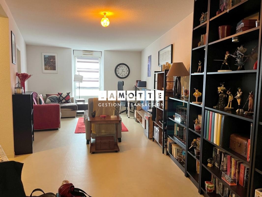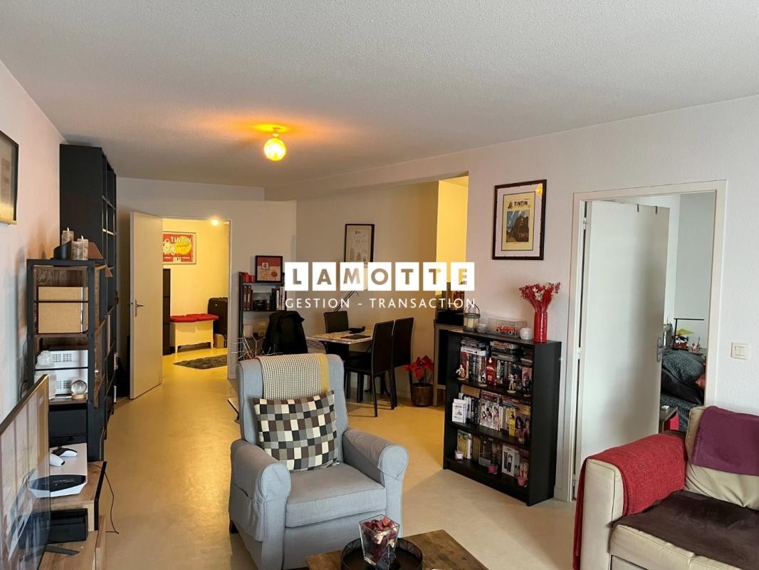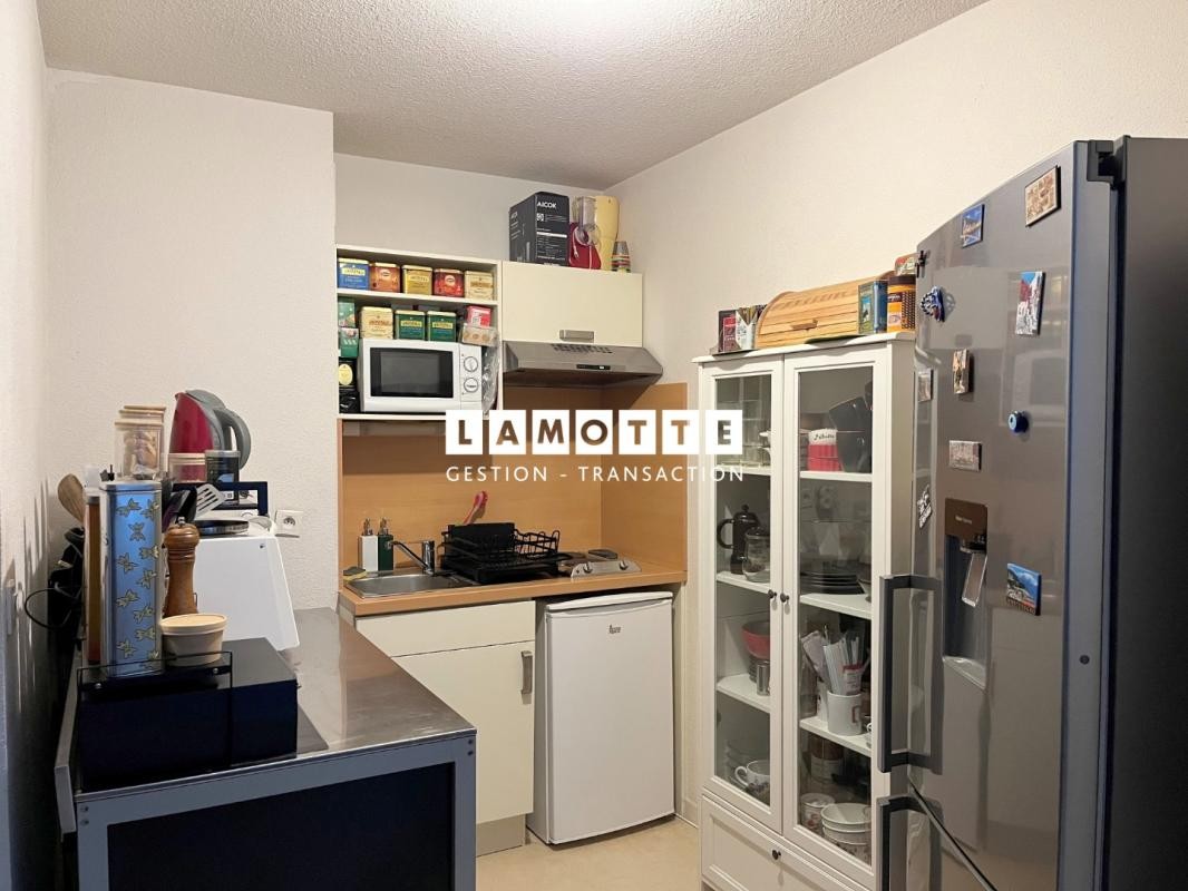 BREQUIGNY - Dans une résidence sécurisée, vaste appartement de type 2 pièces au 2e étage comprenant entrée avec placard, un séjour avec coin kitchenette ouvert aménagée et équipée (frigo, plaque électrique, hotte), une chambre, une salle d'eau avec WC. L'ensemble accompagné d'un parking privatif en sous sol. Chauffage électrique.
