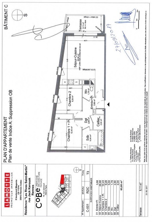Aux abords du Canal Saint-Martin , Dans une résidence sécurisée avec vue sur les espaces paysagers et à seulement 10 minutes du centre ville, magnifique 3 pièces situé au rez de chaussée comprenant une entrée avec placard, un séjour avec une cuisine ouverte aménagée et équipée , deux chambres dont une avec placard, une salle de bain, un wc. Terrasse de 8m²