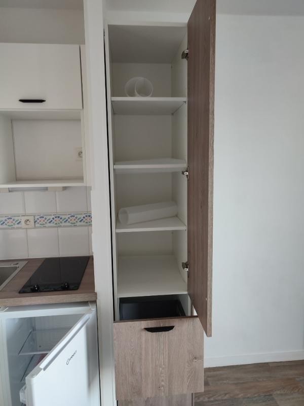 Vannes quartier Pompidou, vue très dégagée pour ce coquet studio situé au 4ème étage d'une résidence sécurisée, avec ascenseur, comprenant une entrée, un séjour avec placard, un coin cuisine aménagé et équipé d'une plaque vitrocéramique et d'un réfrigérateur, une salle d'eau avec wc, l'appartement bénéfice d'une place de parking.
