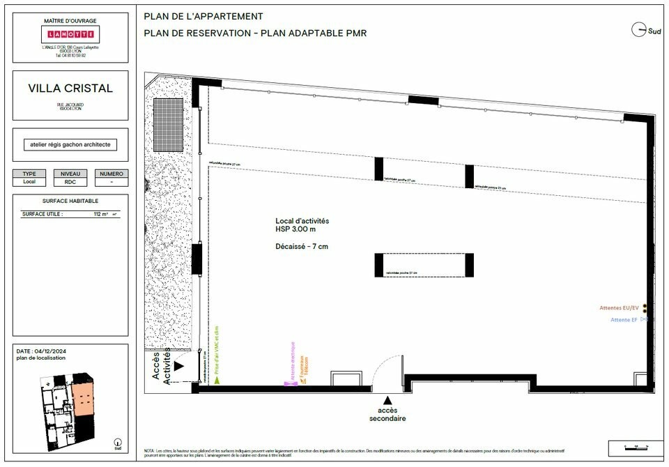 LAMOTTE ENTREPRISES & COMMERCES vous propose, au rez-de-chaussée de la résidence "VILLA CRISTAL", un local professionnel/commercial de 112 m².Locaux livrés brut de béton, vitrines posées, réseaux en attente.