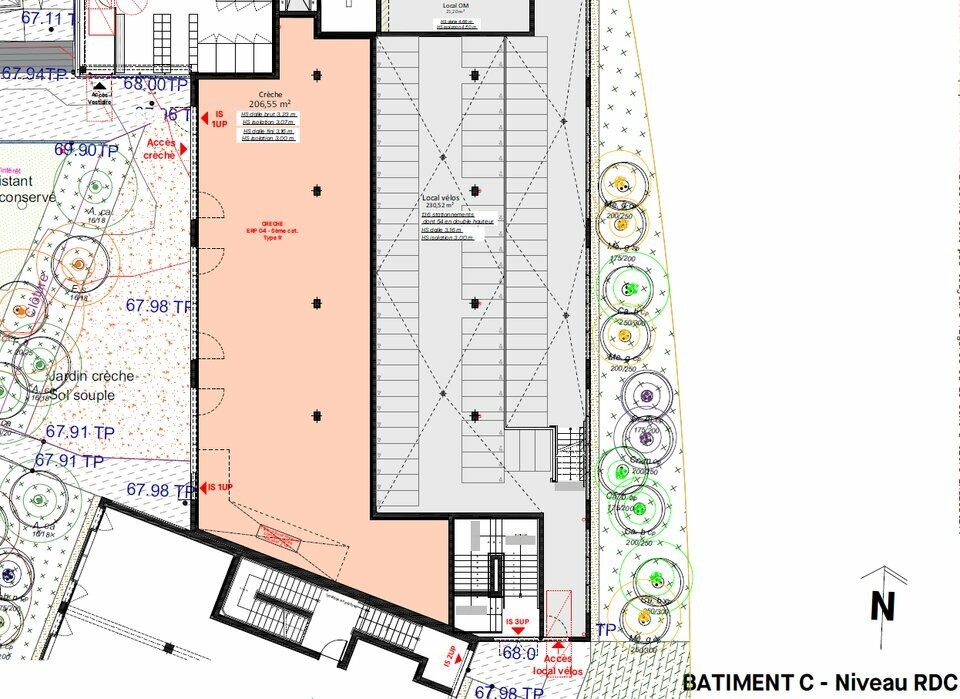 Au rez-de-chaussée du bâtiment C, un local crèche de 206,55 m²