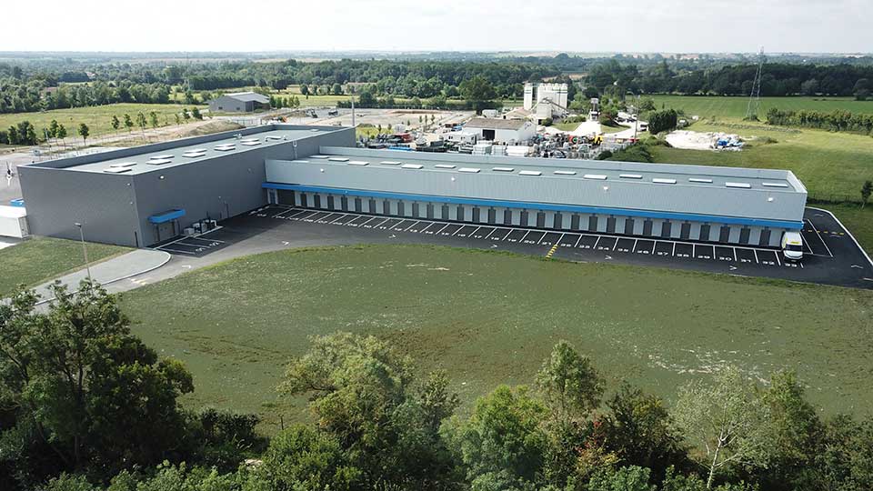 Le bâtiment de tri colis et bureaux/locaux sociaux se situe dans la Zone d’Aménagement Concerté « Batipolis » à Aiffres, en face du golf de Romagné, sur un lot défini pour le projet.