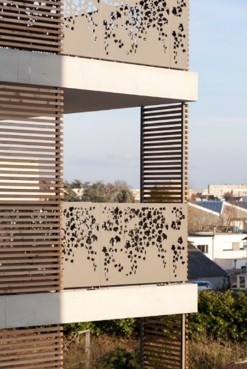 Les prestations se déclinent en : Isolation spécifique, panneaux solaires thermiques, chaudières collectives à gaz et menuiseries PVC ; Bardage des attiques en lames alucobond ; Serrurerie composée de garde-corps thermolaqués découpés au laser suivant motif floral ; Pare-vues en lames de bois naturel ; Façades béton peint.