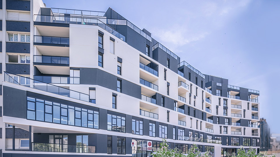 En couture du centre ancien de Vannes, la réalisation de la résidence Influence s’accompagne d’un réaménagement complet du boulevard de la Paix, avec un nouvel alignement d’arbres. Nous avons pris un soin particulier à la qualité d’orientation : de larges balcons positionnés en quinconce pour favoriser l’ensoleillement dessinent des façades dansantes, et donnent à chaque appartement son caractère unique.