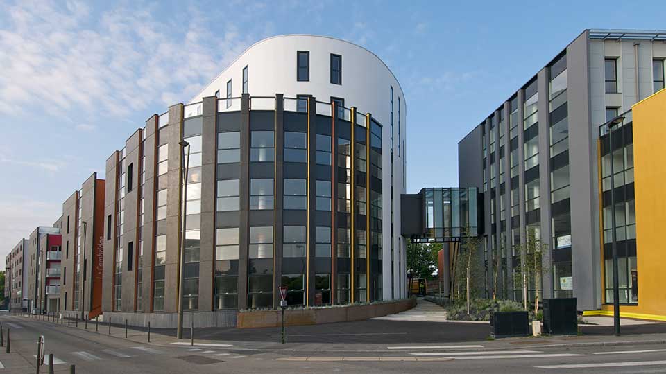 À l’entrée sud de l’Île de Nantes sur l’axe du Busway, Le Cambridge est un programme de 7 000 m² de bureaux, en plus d’un hôtel Campanile et de locaux commerciaux.
