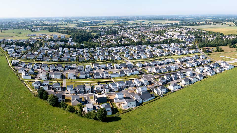 La conception en hameaux du lotissement près de Rennes confère au site un caractère résidentiel qui inspire une vie de quartier tout en préservant l’intimité de ses habitants.