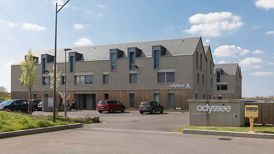 Pôle tertiaire en Ille-et-Vilaine, Odyssée est réparti sur 3 bâtiments. Avec ses 2 700 m², il offre à la fois des prestations adaptées et une ambiance chaleureuse, inspirée des campus. À l’intérieur, des espaces partagés tels que salle de réunion et cuisine favorisent les échanges inter-entreprises.