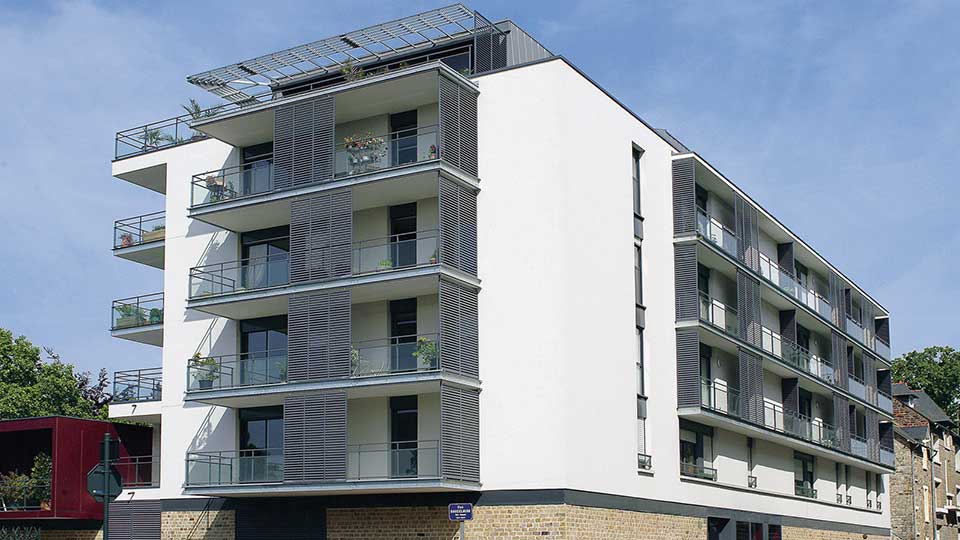 Le bâtiment est construit sans sous-sol, les parkings occupant le rez-de-chaussée, ce qui a permis de réduire les délais de travaux (quatorze mois au total), tout en offrant des habitations surélevées par rapport au niveau de la rue. Ce programme immobilier neuf à Rennes propose 26 appartements, du T2 au T6 (de 42 à 135 m²), pour moitié en accession et en locatif.